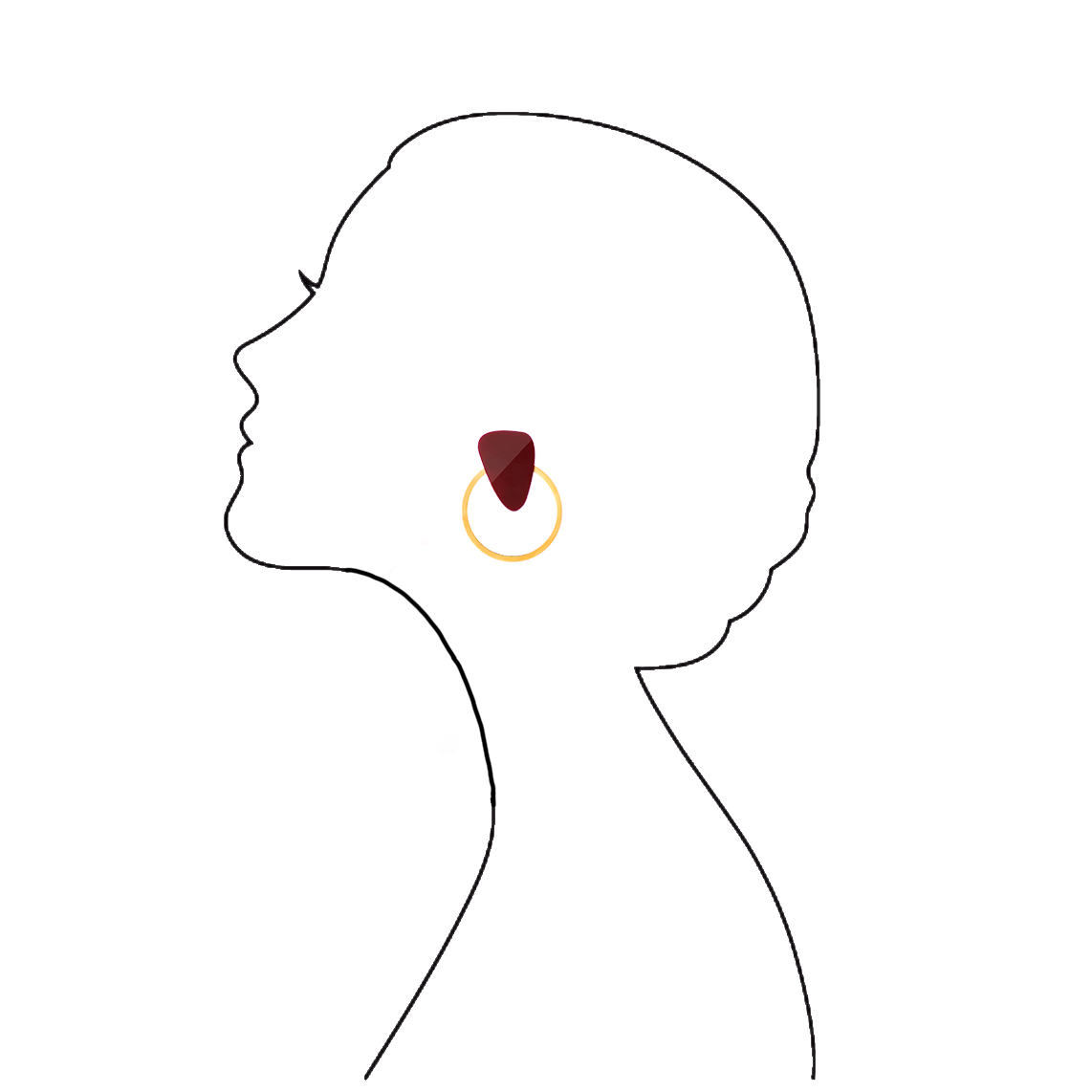 Con las mejillas sonrojadas y la mirada difusa, Baco procura sostener una promesa de sobriedad perdida dentro de la copa que ofrece al espectador. Todo transmite goce: la sonrisa, el gesto despreocupado y el vino, elixir de la juventud eterna, tiñendo sus dedos de rojo. En este diseño hemos querido capturar su esencia de manera concisa con una base negra sobre la que bailan dos gotas doradas. Un pendiente con un movimiento ondulante que iluminará cualquier rostro y despertará un brillo singular.