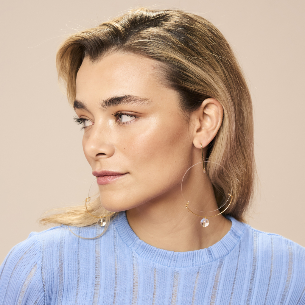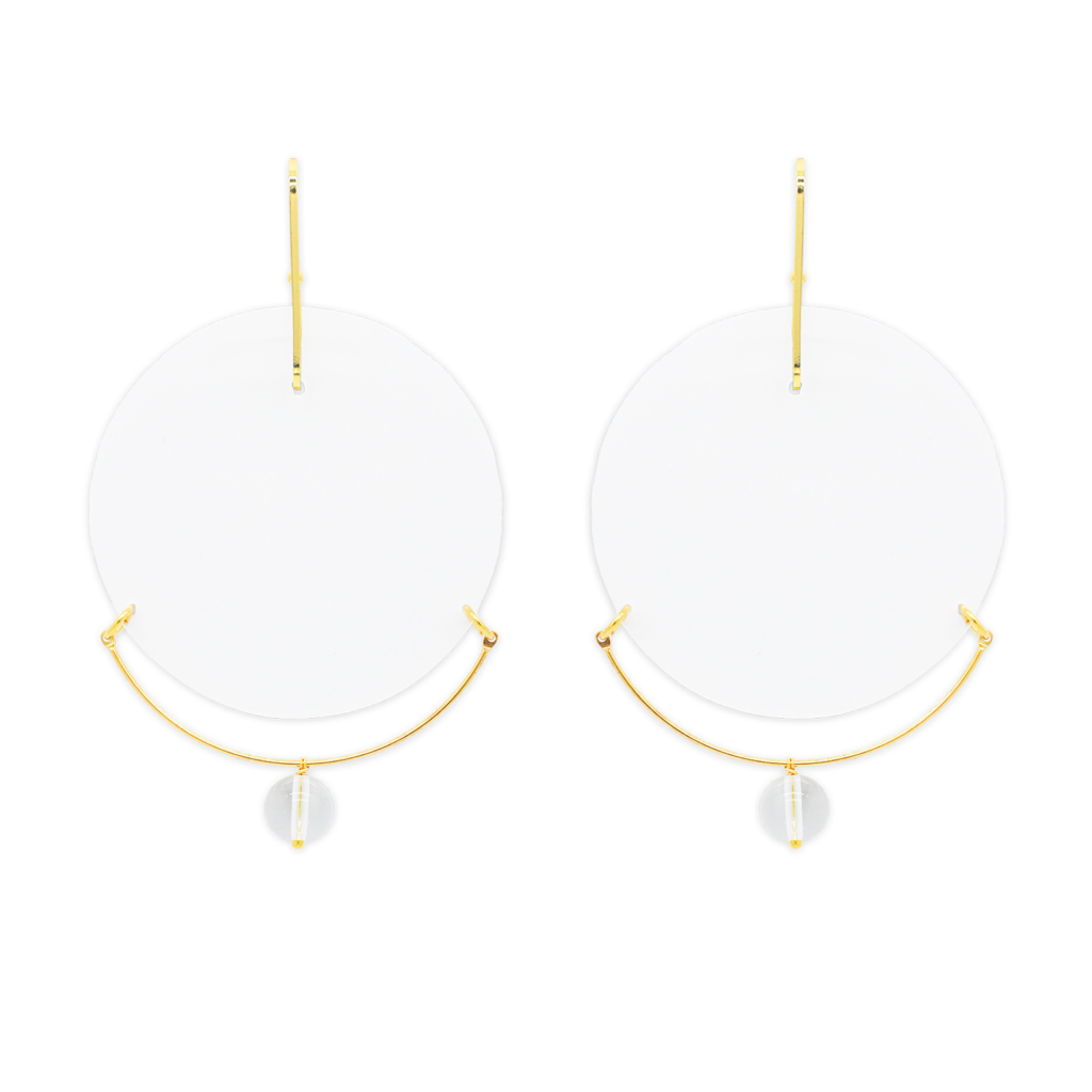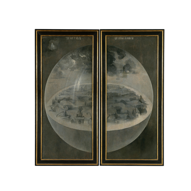 Closed, the triptych is not what it seems. Painted using the grisaille technique, it depicts a transparent sphere where water separates from the earth. The light bounces off its walls. Across the sparse vegetation dusk falls, the twilight that filled the cosmos before the sun and the moon. This is the world on the third day of Creation, a world not yet sullied by man. Wearing a crown, God observes the world from on high with the Scriptures in his hands, which will soon be brought to life. Ipse dixit et jacta sunt. Ípse mandavit et creata sunt: “He spoke it and it was done. He commanded it and it was created”, reads the only inscription on the painting. So go ahead. Get yourself those earrings.