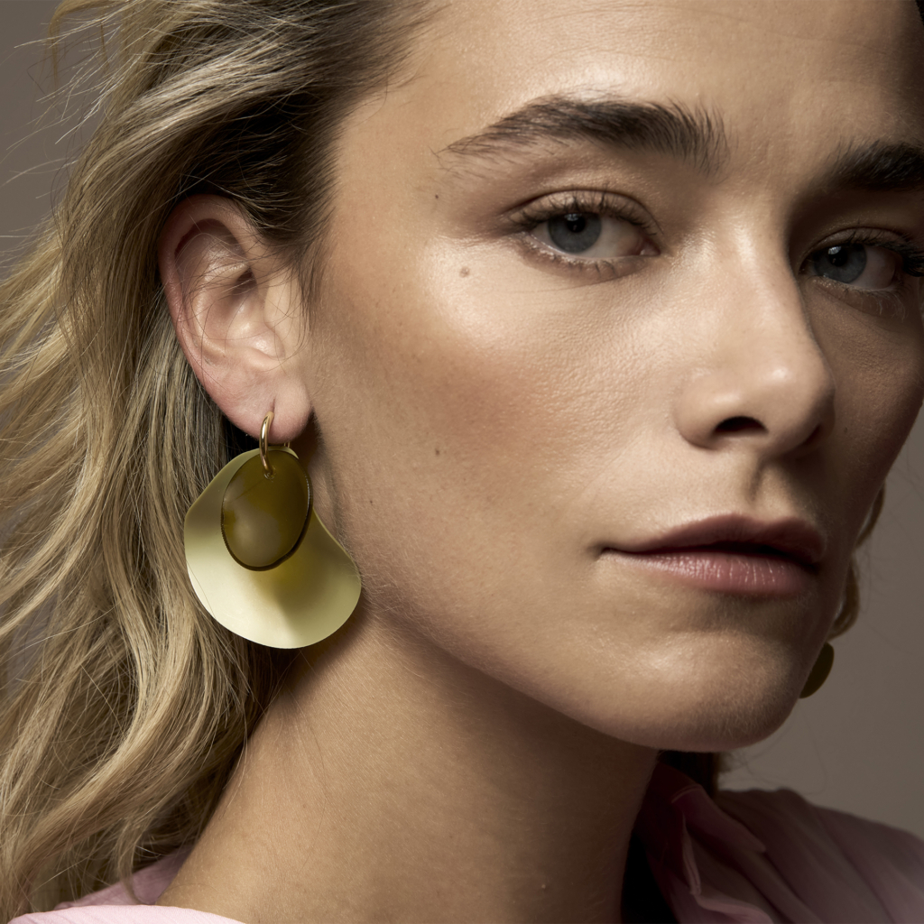 Los líquenes brotan, dibujando formas caprichosas. Rugosidades venosas dan paso a burbujas delicadas; los tallos se convierten en dientes y platos; litorales abruptos estallan contra pabellones escarpados creando ondulaciones atravesadas de grietas. Son una fuerza geológica que no sólo disuelve los rasgos del mundo, sino que origina nuevos ecosistemas. Los minerales almacenados en nuestro cuerpo pasaron en algún momento a través de un líquen. Ya sea sobre los bordes de una carretera o granito en la Antártida, habitan la fina línea que separa la vida de la muerte. Hay quien los usa por sus propiedades antiinflamatorias y antioxidantes. O para cambiar el estado de ánimo, como en el caso de este pendiente.