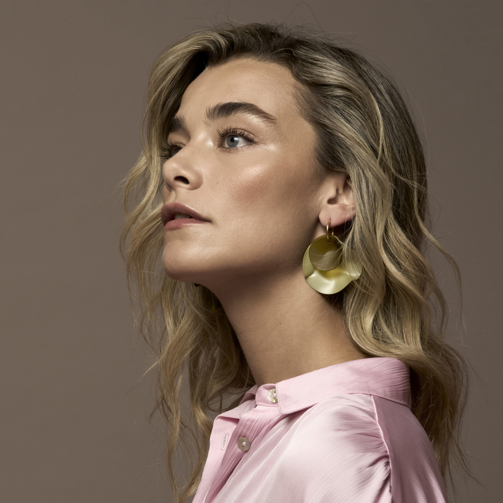 • Acetato de celulosa y latón con baño hipoalergénico en oro de 18k.