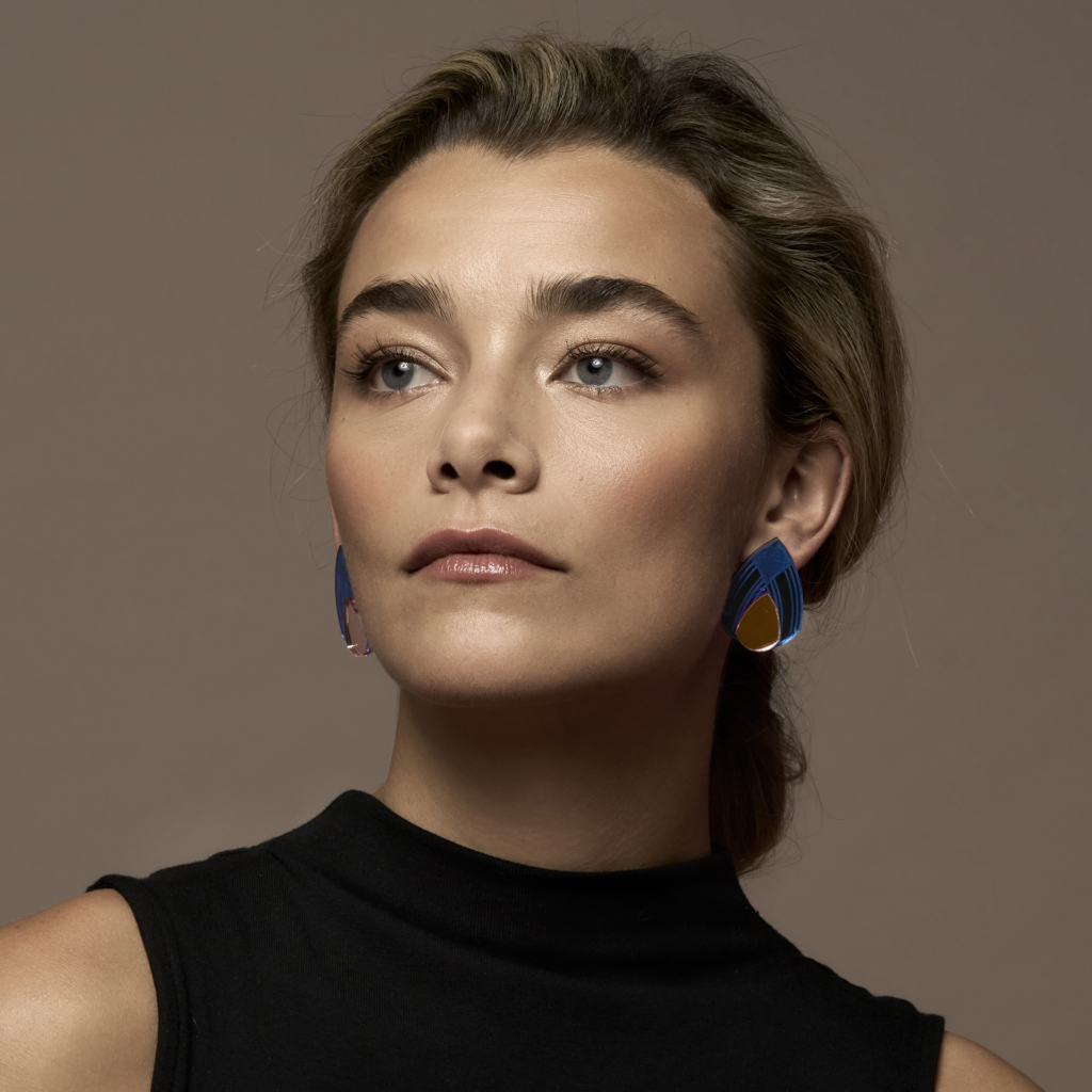 • Metacrilato y latón con baño hipoalergénico en oro de 18k.