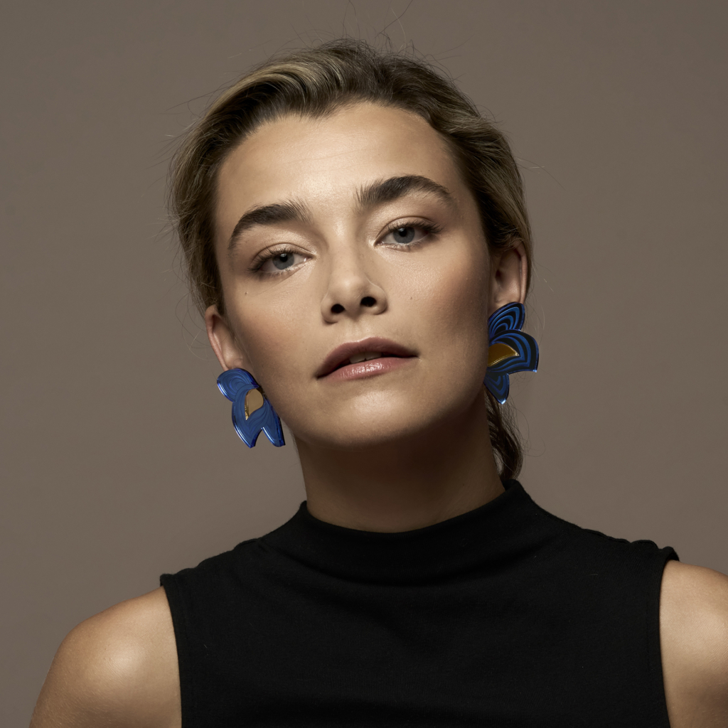 • Metacrilato y latón con baño hipoalergénico en oro de 18k.