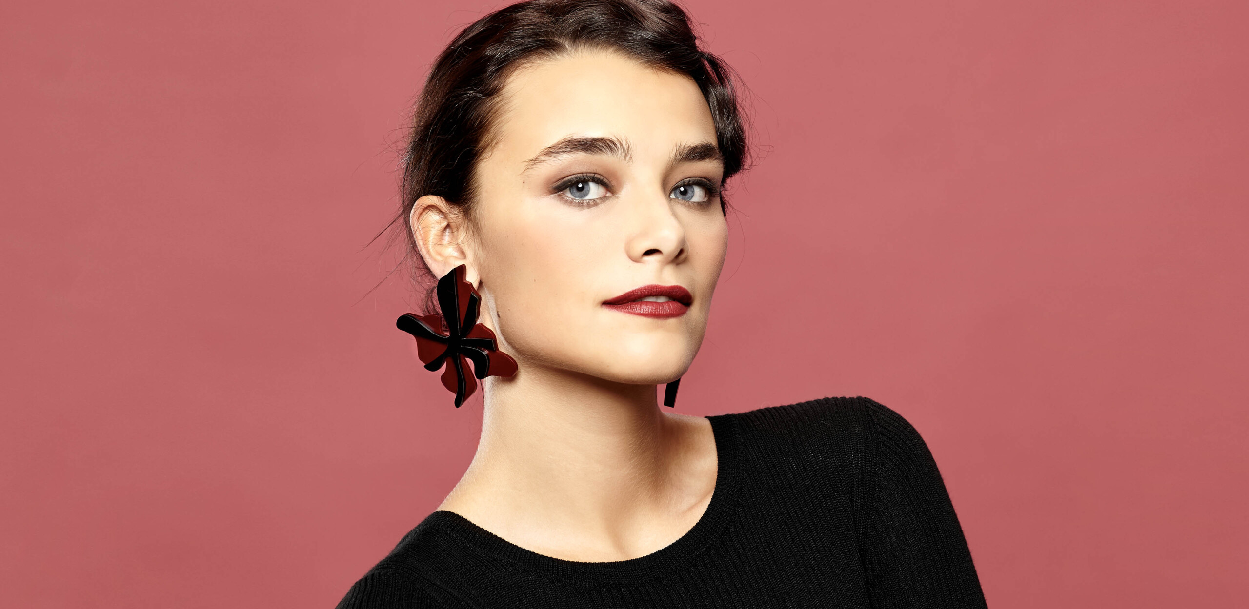 • Metacrilato y latón con baño hipoalergénico en oro de 18k.